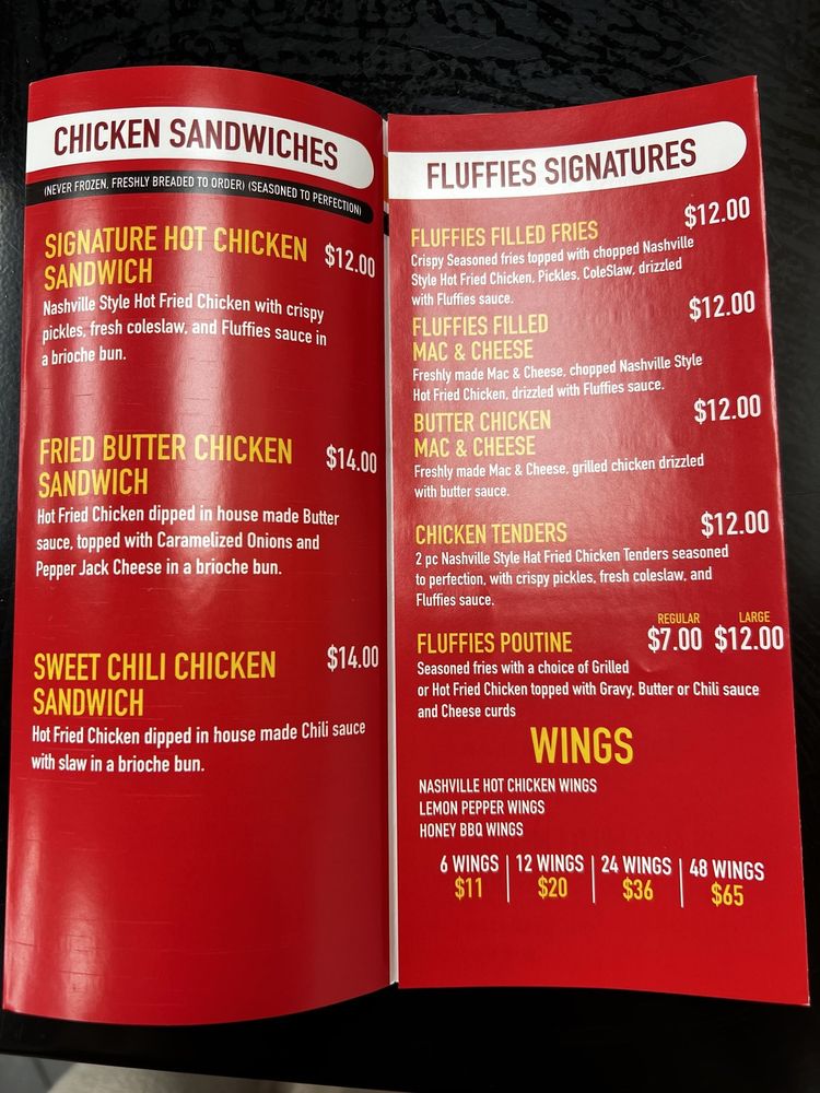 Fluffies Hot Chicken Menu